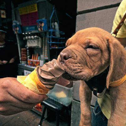 18. Chlap: Hádej, jaká je to zmrzlina? Štěně: Čokoládová!